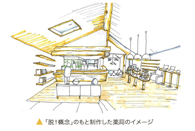 既存の薬局にとらわれない自由な発想で「こんな薬局あったらいいな」を考えました。